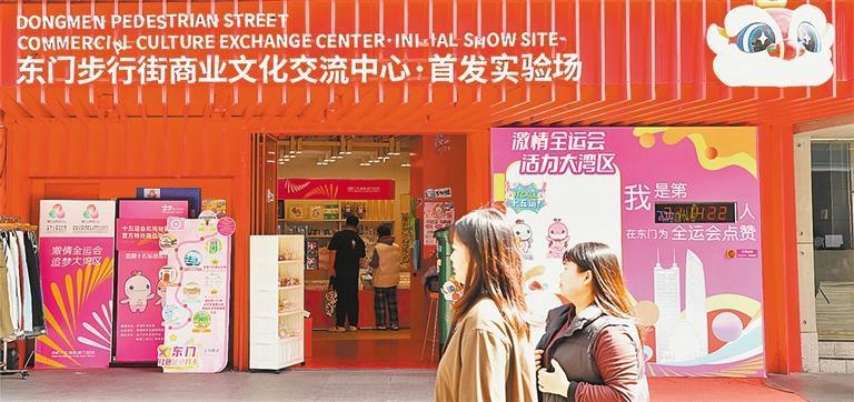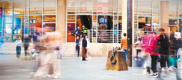 11月21日,游客在東門(mén)步行街商業(yè)文化交流中心選購(gòu)文創(chuàng)產(chǎn)品。該中心是品牌首發(fā)、首展的交流平臺(tái),定期聯(lián)合新進(jìn)品牌舉行聯(lián)展和快閃活動(dòng)。