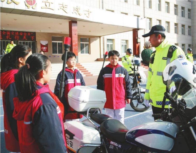 喀左縣公安局交管大隊工作人員為學(xué)生講解交通安全知識。 邰闖 攝