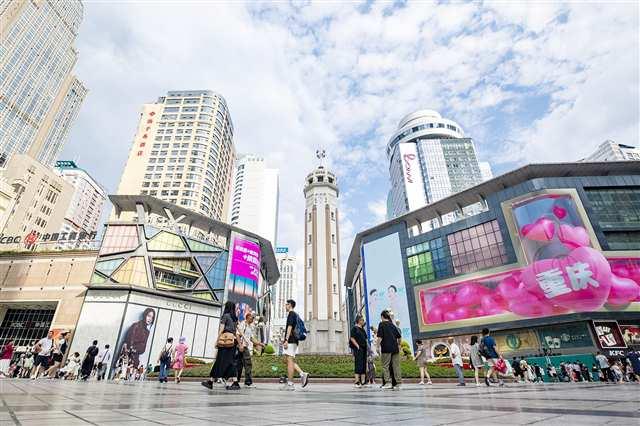 這樣繁華的景象,在解放碑中央商務(wù)區(qū),可謂時(shí)時(shí)有,處處有。這個(gè)年均吸引超2億人次的商圈,正全力打造西部首個(gè)GDP、社零“雙千億”商圈,消費(fèi)競(jìng)爭(zhēng)力排名全國(guó)前列。
