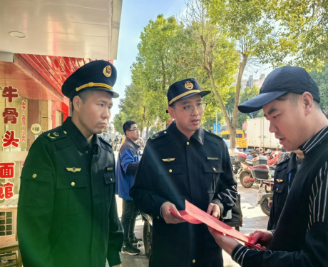 綜合行政執(zhí)法人員聯(lián)合市場(chǎng)監(jiān)管人員上門為新開商戶提供開店指導(dǎo)