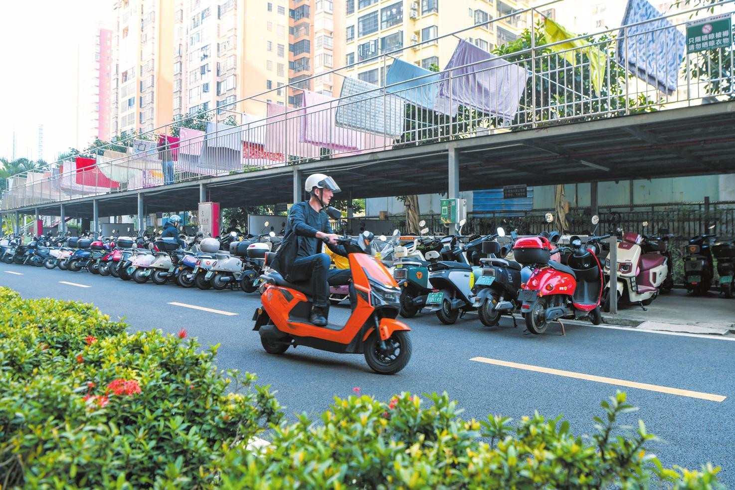 在瓊山區(qū)佳元·椰風水韻小區(qū),物業(yè)部門為業(yè)主設(shè)置了下層停放電動自行車上層晾曬的立體車棚。記者 蘇弼坤 攝