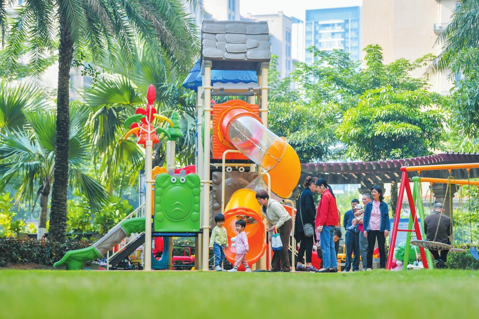 “注意腳下重心,膝蓋再彎一點!”2025年12月13日下午,在瓊山區(qū)佳元·椰風水韻小區(qū)的空地上,孩子們在練習輪滑;一旁的兒童游樂區(qū),老人們帶著孫輩游玩,歡笑聲不斷。這樣的幸福場景,已經(jīng)成為小區(qū)的日常。
