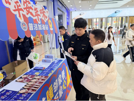 “平安年味”普法加油站走進(jìn)商圈為過往群眾普法