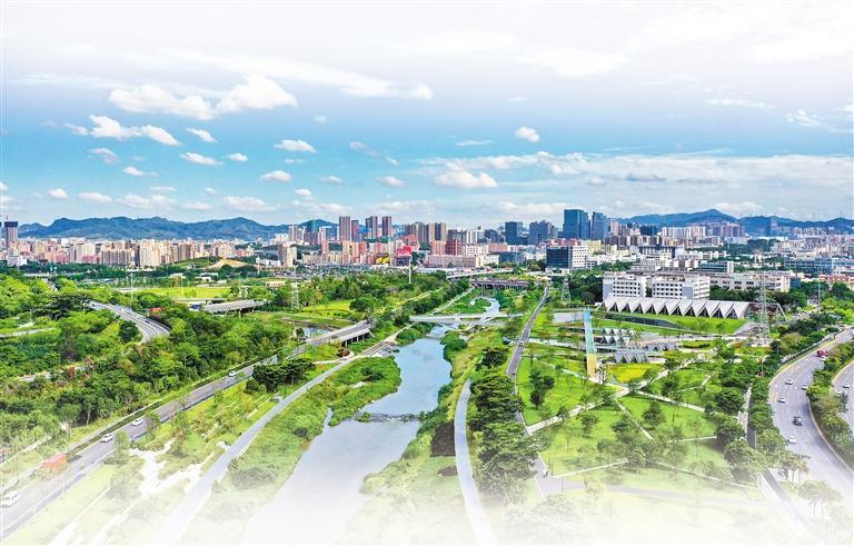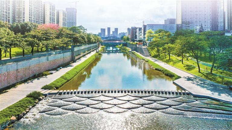 水環(huán)境改善方面,堅持“一河一策”系統(tǒng)治理,綜合運(yùn)用管網(wǎng)完善、廠站擴(kuò)能、問題排口精準(zhǔn)治理、生態(tài)補(bǔ)水等措施,21個國省考斷面連續(xù)三年達(dá)優(yōu)率100%,全市優(yōu)良河長占比由2020年的22.9%提升至90.1%。水清岸綠、魚翔淺底,茅洲河、龍崗河、觀瀾河、大沙河等多條碧道環(huán)境優(yōu)美,成為市民喜愛的“網(wǎng)紅”親水休閑打卡點(diǎn)。