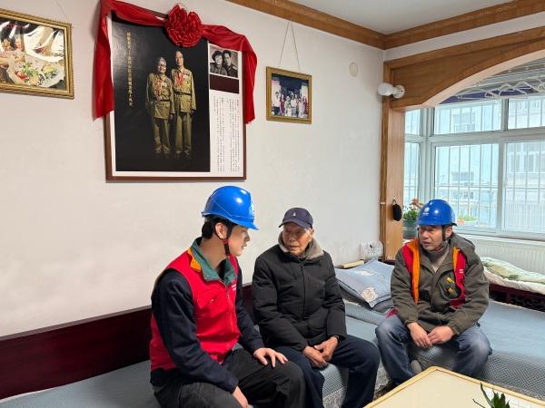 服務(wù)間隙,隊(duì)員們與老人親切攀談,詳細(xì)詢問(wèn)其身體狀況與生活需求,認(rèn)真聆聽(tīng)老人講述過(guò)往崢嶸歲月,一同感慨如今國(guó)泰民安的美好生活。望著老人珍藏的軍裝照和斑駁的軍功獎(jiǎng)?wù)?,?duì)員們滿心敬佩——昔日,老人身著橄欖綠保家衛(wèi)國(guó);今日,大家身穿國(guó)網(wǎng)綠守護(hù)光明,崗位雖變,但為人民服務(wù)的初心始終未改。臨行前,隊(duì)員們將印有24小時(shí)服務(wù)電話的“供電服務(wù)連心卡”送到老人手中,反復(fù)叮囑老人若有用電難題,可隨時(shí)撥打電話聯(lián)系。
