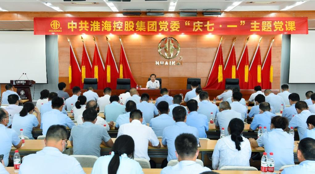 今年7月1日,是中國共產(chǎn)黨成立101周年。在淮??毓杉瘓F(tuán)(以下簡稱淮海集團(tuán)),鮮紅的黨旗和“我心永向黨”的海報(bào)隨處可見,醒目的“共產(chǎn)黨員示范崗”紅色卡片放置在每一個(gè)共產(chǎn)黨員的工位上?!包h旗飄在工位上”是集團(tuán)黨建的一大特色,在集團(tuán)生產(chǎn)一線,一塊標(biāo)語牌格外引人注目——“黨建強(qiáng),企業(yè)才更強(qiáng)”。