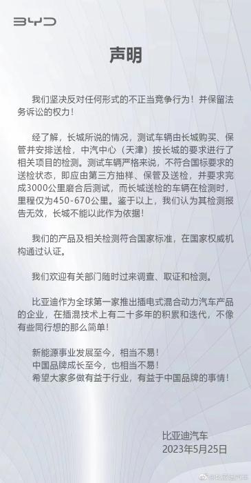 比亞迪聲明