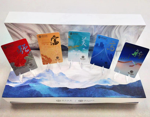 在外觀設(shè)計(jì)上,“強(qiáng)富美高新”硬錢包簡(jiǎn)潔大方、主題突出,每套硬錢包由五張標(biāo)準(zhǔn)卡片式硬錢包組成,分別取名“強(qiáng)、富、美、高、新”,體現(xiàn)了新時(shí)代江蘇發(fā)展的總目標(biāo)定位。其中,“強(qiáng)”主題硬錢包采用中國(guó)風(fēng)設(shè)計(jì),體現(xiàn)江蘇經(jīng)濟(jì)高質(zhì)量發(fā)展,氣勢(shì)如虹;“富”主題硬錢包采用南京云錦作為底紋,在花叢中呈現(xiàn)城市樣貌,體現(xiàn)人民群眾獲得感、幸福感、安全感不斷增強(qiáng);“美”主題硬錢包采用典雅的中國(guó)水彩風(fēng)設(shè)計(jì),綠色潑墨漸變體現(xiàn)江蘇綠水青山的生態(tài)環(huán)境建設(shè)成果,融入了省會(huì)南京的玄武門、銀杏葉、吉祥飛鳥(niǎo)等元素,寓意江南魚(yú)米之鄉(xiāng)的秀美風(fēng)光;“高”主題硬錢包采用深藍(lán)色作為設(shè)計(jì)主色,鋼筆的筆尖與文化和文明相呼應(yīng),體現(xiàn)江蘇的社會(huì)文化程度高;“新”主題硬錢包采用新中式風(fēng)格,以江南建筑輪廓融入更多現(xiàn)代的審美,寓意堅(jiān)持把科技創(chuàng)新作為經(jīng)濟(jì)社會(huì)發(fā)展的第一動(dòng)力。
