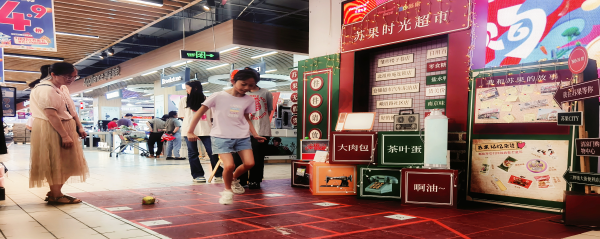 近日,“蘇果時光超市”主題打卡點亮相華潤蘇果清涼門店,給大家?guī)硪粨堋盎貞洑ⅰ薄,F(xiàn)場可以看到,從大家耳熟能詳?shù)囊慌祥T店名婁子巷店、北祖師庵店,到上世紀(jì)80、90年代記憶深處的蘇果大肉包、北冰洋汽水、娃哈哈AD鈣奶。懷舊復(fù)古的雙卡收錄機(jī)、老式電視機(jī)、熱水瓶等經(jīng)典元素的組合,讓人仿佛穿越了“時光隧道”。在“我和蘇果的故事”模塊,消費者的美好記憶化作便利貼定格在現(xiàn)場,此外還有“丟沙包”“跳房子”等互動抽獎小游戲,進(jìn)一步強(qiáng)化了“時光”這個溫暖、美好的概念,帶來一撥濃濃的“回憶殺”,吸引不少消費者拍照打卡。