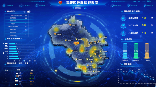 為落實“推動更多法治力量向引導(dǎo)和疏導(dǎo)端用力”的要求,海淀區(qū)檢察院在海淀區(qū)區(qū)委政法委大力支持下,以智慧化檢察監(jiān)督主動服務(wù)轄區(qū)社會治理大局。海淀區(qū)檢察院與29個街鎮(zhèn)建立溝通聯(lián)絡(luò)機制,將檢察機關(guān)信息化、智能化成果與街鎮(zhèn)共享,結(jié)合街鎮(zhèn)解決基層治理難題、解決群眾急難愁盼問題等需求,向街鎮(zhèn)提供區(qū)域高發(fā)罪名、重點發(fā)案場所等數(shù)據(jù)信息和典型案例,為街鎮(zhèn)精準(zhǔn)治理提供直觀、科學(xué)、可靠的數(shù)據(jù)支持,助力街鎮(zhèn)開展源頭治理。圖鑒監(jiān)督模型中盜竊、詐騙、故意傷害等關(guān)系群眾安全感的輕罪案件數(shù)據(jù)以及街鎮(zhèn)與檢察機關(guān)協(xié)作治理工作情況被納入了區(qū)域考核標(biāo)準(zhǔn)。