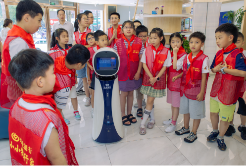 近日,興業(yè)銀行南京高淳支行迎來一批特殊的小客人——來自高淳淳溪中心小學(xué)和寶塔小學(xué)的20名小學(xué)生,他們換上“工作裝”,參加了一場別開生面的“小小銀行家”職業(yè)體驗(yàn)活動(dòng)?;顒?dòng)由興業(yè)銀行南京高淳支行舉辦,旨在通過趣味橫生的金融小課堂,讓同學(xué)們了解基礎(chǔ)金融知識,培養(yǎng)反詐防范意識?;顒?dòng)中,機(jī)器人小興帶著同學(xué)們參觀了銀行的各個(gè)區(qū)域,先后體驗(yàn)了叫號機(jī)、點(diǎn)鈔機(jī)、智能柜臺及ATM自助取款機(jī)等設(shè)備,了解各個(gè)崗位的運(yùn)作機(jī)制,并且讓同學(xué)們親身體驗(yàn)了銀行員工的工作流程。