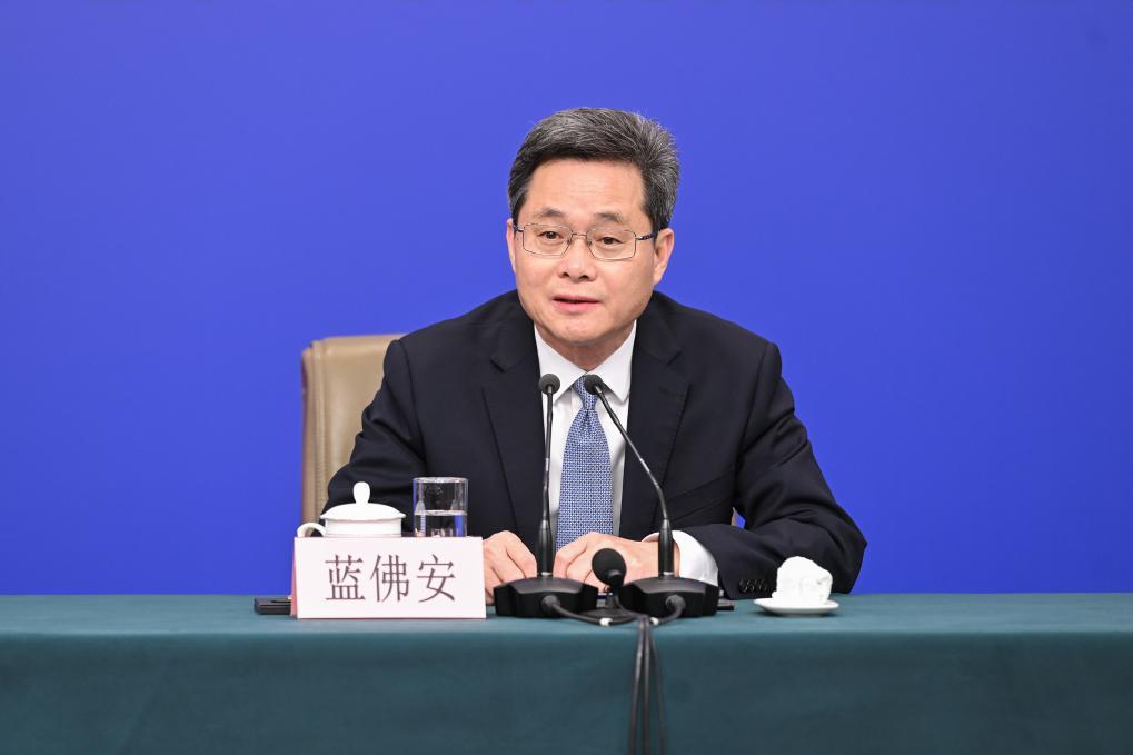 這是藍佛安在回答記者提問。新華社記者 胥冰潔 攝