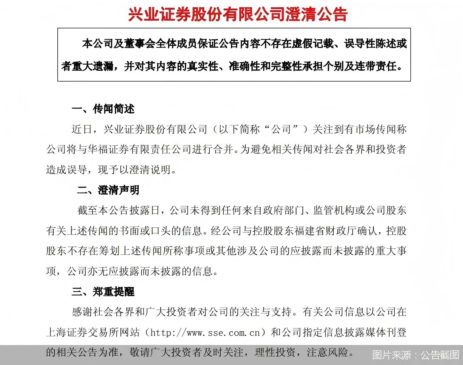 6月11日,興業(yè)證券發(fā)布澄清公告表示,近日,關(guān)注到有市場傳聞稱公司將與華福證券進(jìn)行合并。為避免相關(guān)傳聞對(duì)社會(huì)各界和投資者造成誤導(dǎo),現(xiàn)予以澄清說明。