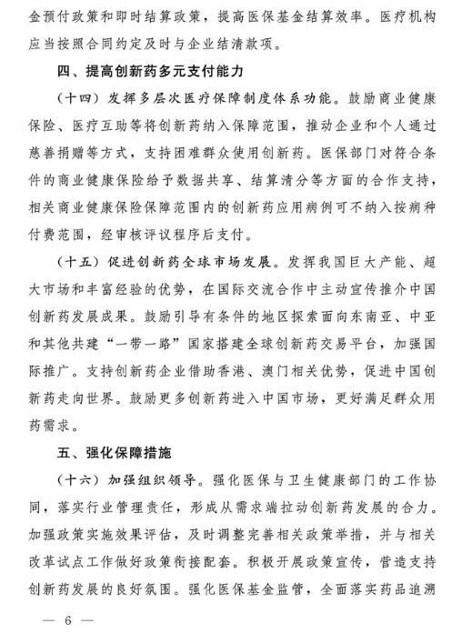 以下為《支持創(chuàng)新藥高質(zhì)量發(fā)展的若干措施》全文: