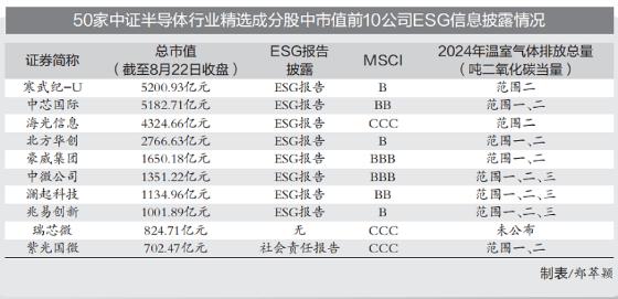 近日,伴隨著新一代大語言模型DeepSeek-V3.1的發(fā)布,市場對半導體行業(yè)的關注度進一步提升。可持續(xù)發(fā)展關乎半導體行業(yè)長期競爭力,中國證券報記者梳理了50家中證半導體行業(yè)精選成分股的ESG信息披露情況發(fā)現(xiàn),ESG相關報告(包括可持續(xù)發(fā)展報告、社會責任報告)披露率達66%;市值排名靠前公司ESG評級表現(xiàn)更優(yōu)。對芯片設計與設備制造環(huán)節(jié)而言,科技創(chuàng)新與知識產權保護、數(shù)據(jù)安全與隱私保護、員工培養(yǎng)與成長等公司治理類和社會類議題尤為重要。