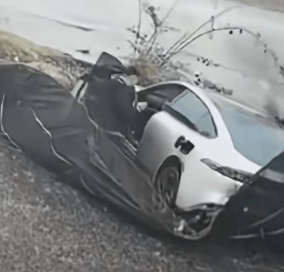 一段網(wǎng)絡(luò)視頻顯示,一輛汽車失控滑入路旁溝里,隨后冒出濃烈黑煙和火焰。車主下車后嘗試打開后車門,但車門無法從外部開啟。有人員上前砸窗,后排乘客才被救出。