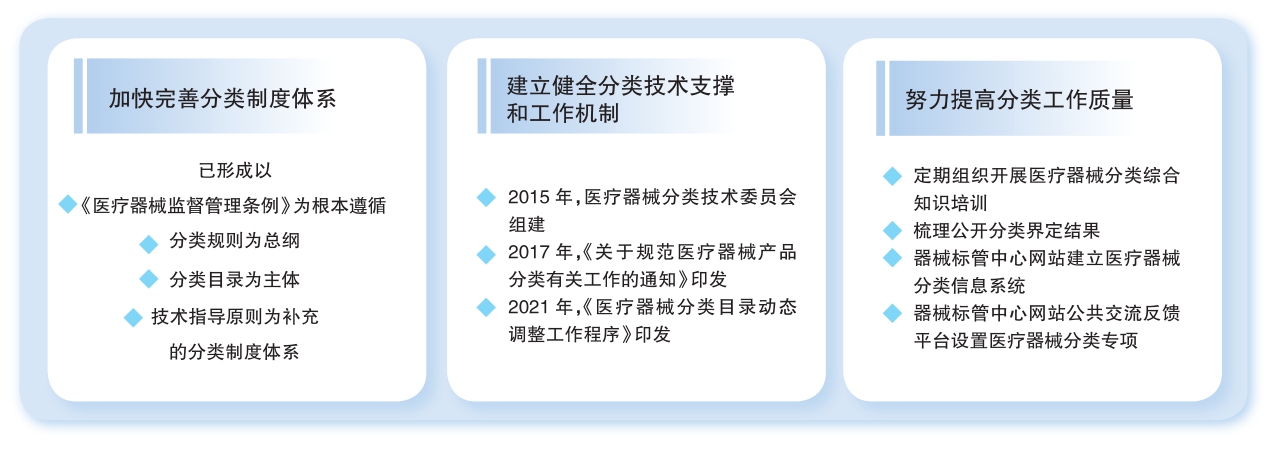 國(guó)家藥監(jiān)部門不斷健全分類技術(shù)支撐,持續(xù)優(yōu)化分類工作機(jī)制,為醫(yī)療器械分類管理提供強(qiáng)力保障。