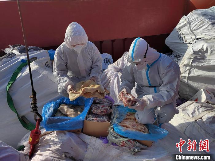經(jīng)登臨檢查發(fā)現(xiàn),該船上裝載有大量用編織袋封裝的牛肉等凍品約150噸,隨船未發(fā)現(xiàn)相關(guān)凍品來源手續(xù)和檢驗(yàn)檢疫證明,涉嫌走私。由于該船未裝置冷藏保鮮設(shè)備,部分凍品已出現(xiàn)腐爛發(fā)臭跡象。