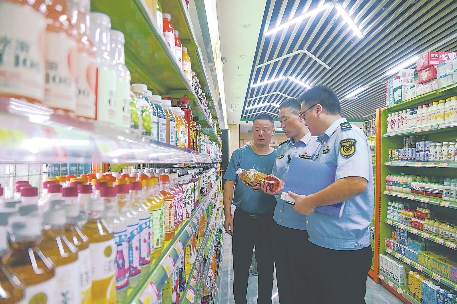 9月7日,阜陽(yáng)市市場(chǎng)監(jiān)管部門針對(duì)校園內(nèi)外食堂、超市等相關(guān)場(chǎng)所進(jìn)行食品安全檢查,確保學(xué)生“舌尖上的安全”。通訊員 龐 誠(chéng) 攝