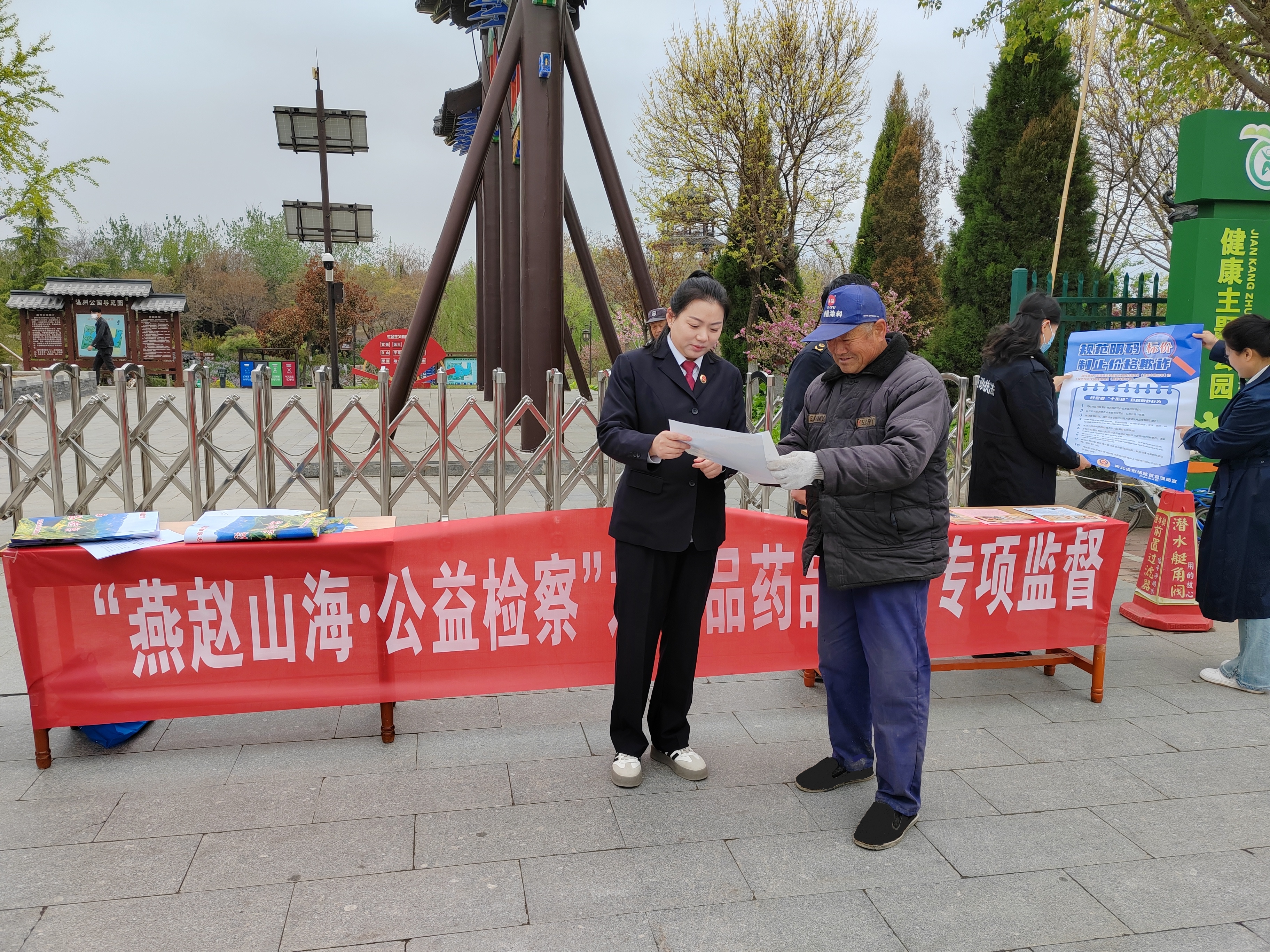 為積極開展“公益訴訟走基層、百鎮(zhèn)千村萬戶行”專項工作,4月9日,河北省滄州市河間市人民檢察院聯(lián)合河間市市場監(jiān)督管理局到瀛州公園廣場開展“燕趙山海·公益檢察”之食品藥品安全專項監(jiān)督宣傳活動。