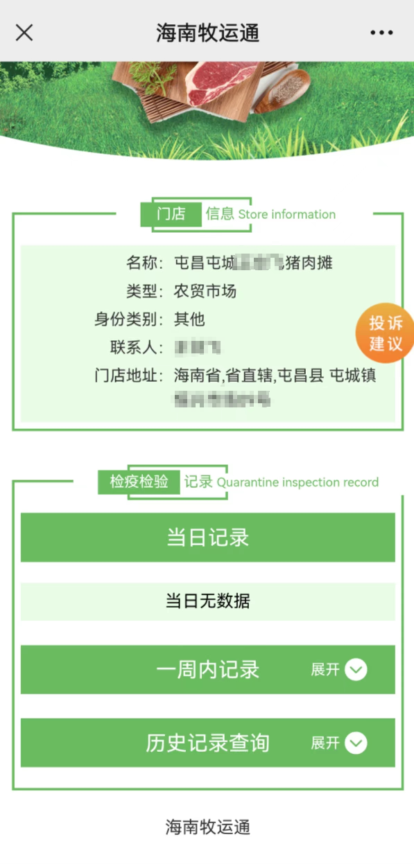 一、消費者在購買畜禽肉時,應(yīng)盡量選擇資質(zhì)齊全、管理規(guī)范的超市、農(nóng)貿(mào)市場等進行選購,并注意查看是否附具“兩證兩章”(即動物產(chǎn)品檢疫合格證、肉品品質(zhì)檢驗合格證、動物檢疫驗訖印章、肉品品質(zhì)檢驗驗訖印章)。當前,海南省農(nóng)業(yè)農(nóng)村部門已開展無紙化開具《動物檢疫合格證明》及肉品品質(zhì)檢驗合格證相關(guān)工作,電子證明依托“海南牧運通”小程序開具,消費者可要求商戶展示“海南牧運通”二維碼,通過微信“掃一掃”功能,掃描商戶二維碼查看商戶所售畜禽肉類產(chǎn)品的“兩證”等具體信息。對于進口肉類,可索要并查看入境貨物檢驗檢疫證明。無相關(guān)證章或證章不全的,應(yīng)謹慎選購。