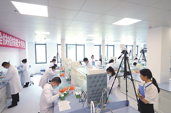 實(shí)操競(jìng)賽共設(shè)置42個(gè)實(shí)驗(yàn)操作臺(tái),每名選手操作時(shí)長(zhǎng)不超過(guò)1.5小時(shí)。每名參賽選手需完成2項(xiàng)“快檢檢測(cè)項(xiàng)目”,共計(jì)30組盲樣,參賽人員按照使用說(shuō)明書(shū)進(jìn)行現(xiàn)場(chǎng)操作,并根據(jù)實(shí)驗(yàn)現(xiàn)象填寫(xiě)檢測(cè)結(jié)果。實(shí)操競(jìng)賽難點(diǎn)有3個(gè):采取檢測(cè)盲樣考核,盲樣既有陰性樣品也有陽(yáng)性樣品,且陽(yáng)性樣品加標(biāo)濃度是最低檢出限,非??简?yàn)操作人員水平;快檢操作中對(duì)易忽略的規(guī)范性操作進(jìn)行考核,移液器等快檢關(guān)鍵設(shè)備的取液、換槍頭等操作有很多細(xì)節(jié),稍不注意就會(huì)導(dǎo)致扣分;實(shí)驗(yàn)室環(huán)境安全也是一個(gè)考點(diǎn),實(shí)驗(yàn)現(xiàn)場(chǎng)分別準(zhǔn)備了垃圾桶和廢液桶,參賽選手應(yīng)將固體廢棄物和廢液分別倒入相應(yīng)的容器內(nèi),考核了對(duì)廢棄物的分類(lèi)處理能力。