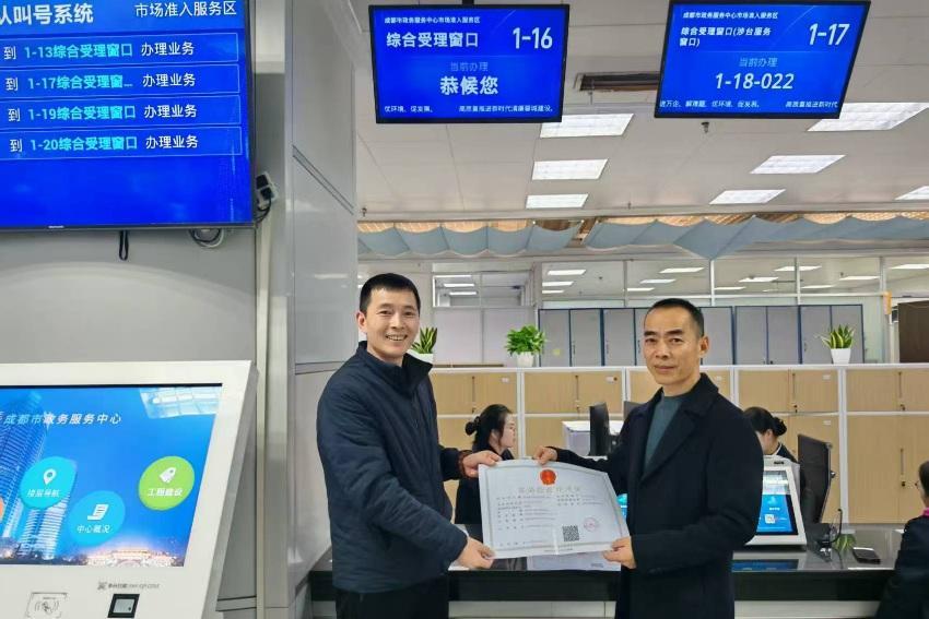 發(fā)證現(xiàn)場(chǎng)。成都市市場(chǎng)監(jiān)管局供圖