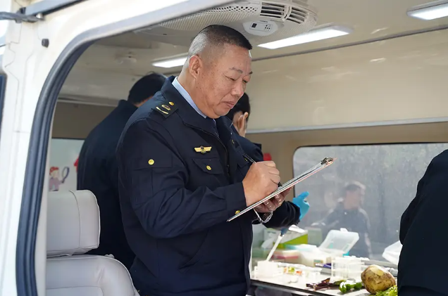 一旁的食品安全快速檢測車也備受關注,不少居民提著剛買的蔬菜前來檢測,現(xiàn)場氣氛熱烈。