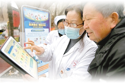 2020年12月2日,安徽理工大學第一附屬醫(yī)院醫(yī)護人員走進淮南市田家庵區(qū)洞山社區(qū),指導老年患者使用皖事通平臺淮南分站上線的該院互聯(lián)網(wǎng)醫(yī)院應用服務,方便老年患者使用手機就醫(yī)問診?! £?彬攝(影像中國) |
