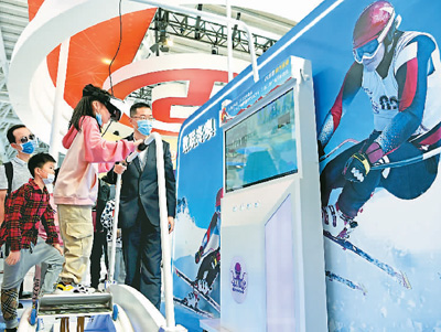 日前,福建省福州市馬尾區(qū)魁岐小學(xué)二年級學(xué)生在第四屆數(shù)字中國建設(shè)峰會數(shù)字成果展覽會上通過VR設(shè)備體驗冬奧滑雪項目。