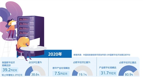 當前,5G、大數(shù)據(jù)、人工智能、區(qū)塊鏈等技術(shù)加速向各行業(yè)融合滲透,數(shù)字技術(shù)和數(shù)據(jù)要素的應用場景較為多元,其對傳統(tǒng)產(chǎn)業(yè)的賦能作用日益凸顯,數(shù)據(jù)產(chǎn)業(yè)發(fā)展的態(tài)勢也備受關(guān)注。具體來看,農(nóng)業(yè)數(shù)據(jù)已經(jīng)成為“新農(nóng)具”,精準化種養(yǎng)取得積極進展,使得農(nóng)業(yè)生產(chǎn)在增產(chǎn)增收的同時可實現(xiàn)從生產(chǎn)到消費全過程的數(shù)據(jù)可記錄、可存儲、可追溯、可查證;工業(yè)互聯(lián)網(wǎng)、智能工廠等蓬勃發(fā)展,工業(yè)企業(yè)的數(shù)字化轉(zhuǎn)型進程加快,有數(shù)據(jù)顯示,2020年我國規(guī)模以上工業(yè)企業(yè)生產(chǎn)設備數(shù)字化率已達49.4%;“數(shù)據(jù)+”的快速發(fā)展有力激發(fā)了消費市場活力,2020年實物商品網(wǎng)上零售額97590億元,比上年增長14.8%。在此背景下,更好促進數(shù)字技術(shù)與實體經(jīng)濟深度融合,以數(shù)字技術(shù)賦能傳統(tǒng)產(chǎn)業(yè)轉(zhuǎn)型升級,已經(jīng)成為催生新業(yè)態(tài)新模式、壯大經(jīng)濟發(fā)展新引擎的重要抓手。