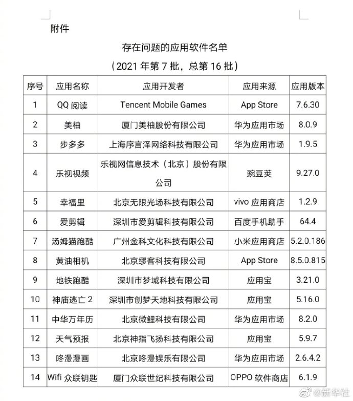 記者28日從工信部獲悉,工信部針對用戶反映強烈投訴較多的開屏彈窗信息騷擾用戶等違規(guī)行為進行了集中整治。近期在對該問題“回頭看”中,依然發(fā)現(xiàn)部分企業(yè)“有令不行、有禁不止”。檢測發(fā)現(xiàn),QQ閱讀、美柚等14款App未嚴格落實整改要求,工信部要求這些App應在8月3日前完成徹底整改工作。逾期不整改的或整改不到位的,將依法依規(guī)組織開展相關處置工作。