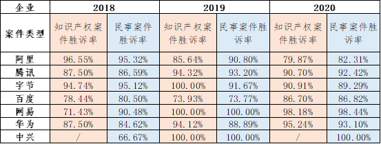 (二)互聯網企業(yè)知識產權案件勝訴率概覽