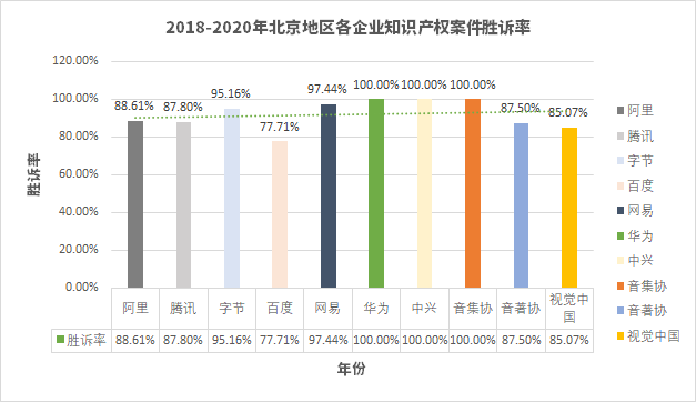 1、互聯網企業(yè)在北京地區(qū)知識產權案件勝訴率情況