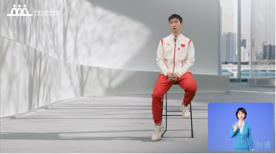 圖說:武大靖在2022中國互聯(lián)網(wǎng)公益峰會分享公益經(jīng)歷