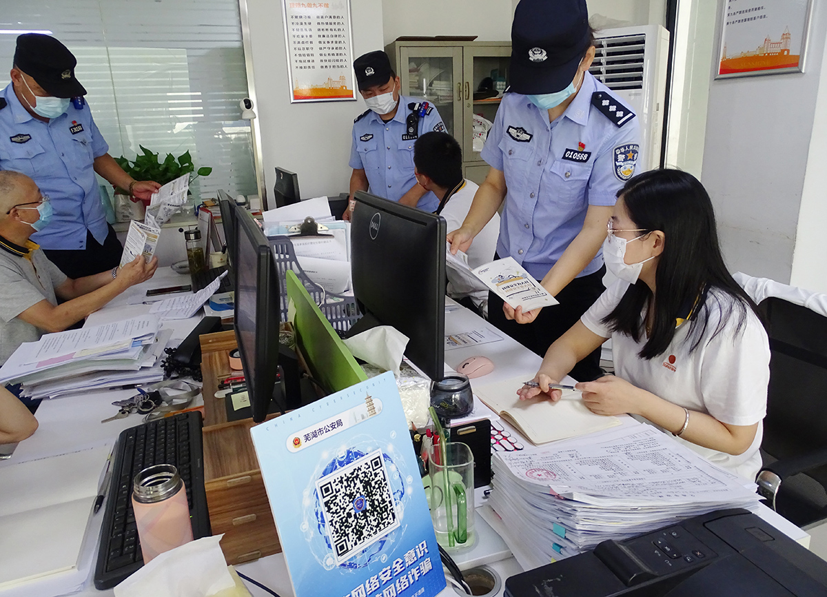 9月8日,國家網(wǎng)絡(luò)安全宣傳周期間,安徽省蕪湖市公安局鏡湖分局濱江派出所組織開展“網(wǎng)絡(luò)安全宣傳進百家”活動。民警走進轄區(qū)企業(yè),向企業(yè)員工宣傳網(wǎng)絡(luò)安全知識,提高大家安全防范意識。