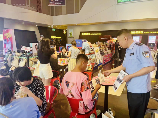 影片開始前,該分局反詐中心民警通過在影院醒目位置張貼反詐海報(bào)、發(fā)放反詐手冊、懸掛反詐條幅、擺放反詐展板、講解反詐知識、問答互動等多種形式,向觀影群眾普及反詐知識,讓大家對當(dāng)前電信網(wǎng)絡(luò)詐騙發(fā)案形式及種類有了更直觀、更深刻的認(rèn)識。此外,民警還現(xiàn)場指導(dǎo)大家下載安裝國家反詐中心APP。