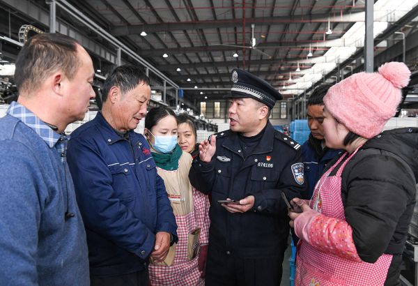 1月5日,安徽省馬鞍山市含山縣公安局花山派出所組織民警走進(jìn)轄區(qū)企業(yè)開展反電詐宣傳活動。