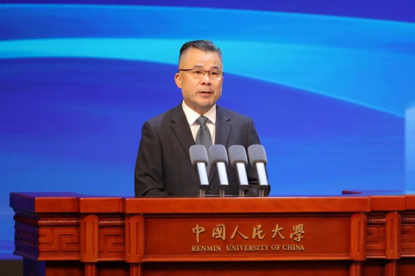 圖為中國(guó)人民大學(xué)黨委書記張東剛在開幕式致辭。