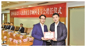 邢輝(左)受聘擔(dān)任新北區(qū)政府法律顧問。