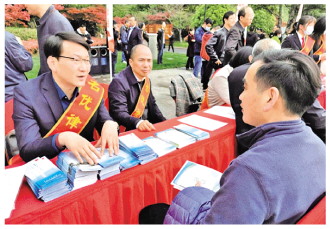 邢輝(左一)現(xiàn)場為群眾答疑解惑。