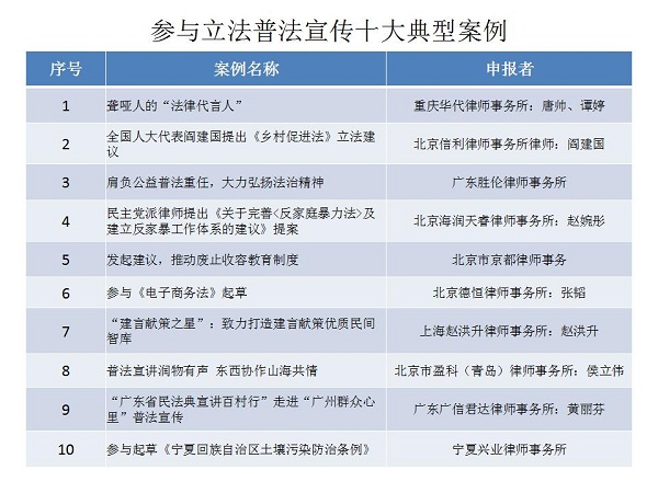 結(jié)合公眾投票和專家評(píng)審,十大律師公益類別最終產(chǎn)生了一百個(gè)典型案例,一百個(gè)提名案例。