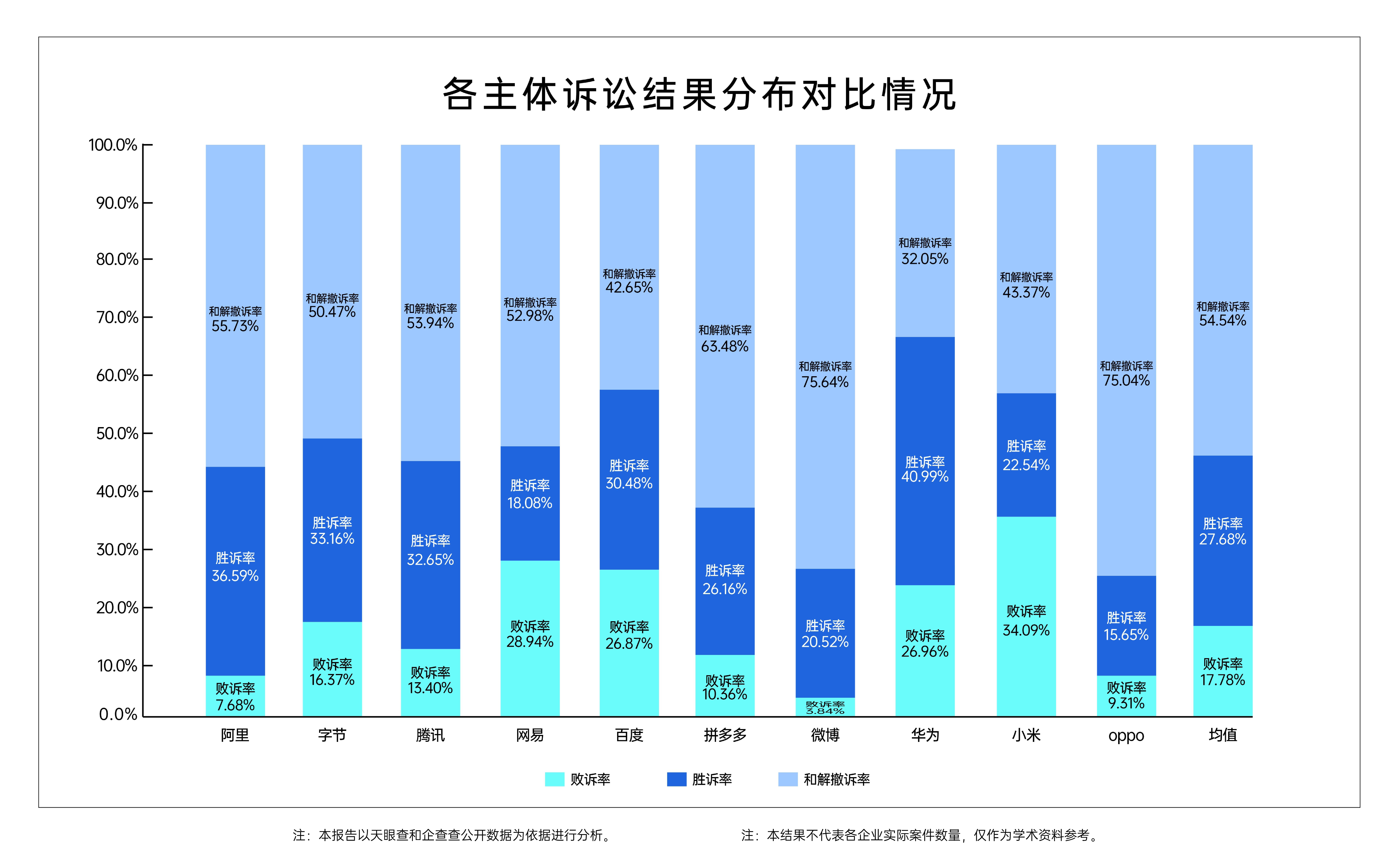 (根據(jù)企查查專業(yè)版數(shù)據(jù)統(tǒng)計,各主體訴訟結(jié)果分布對比情況)