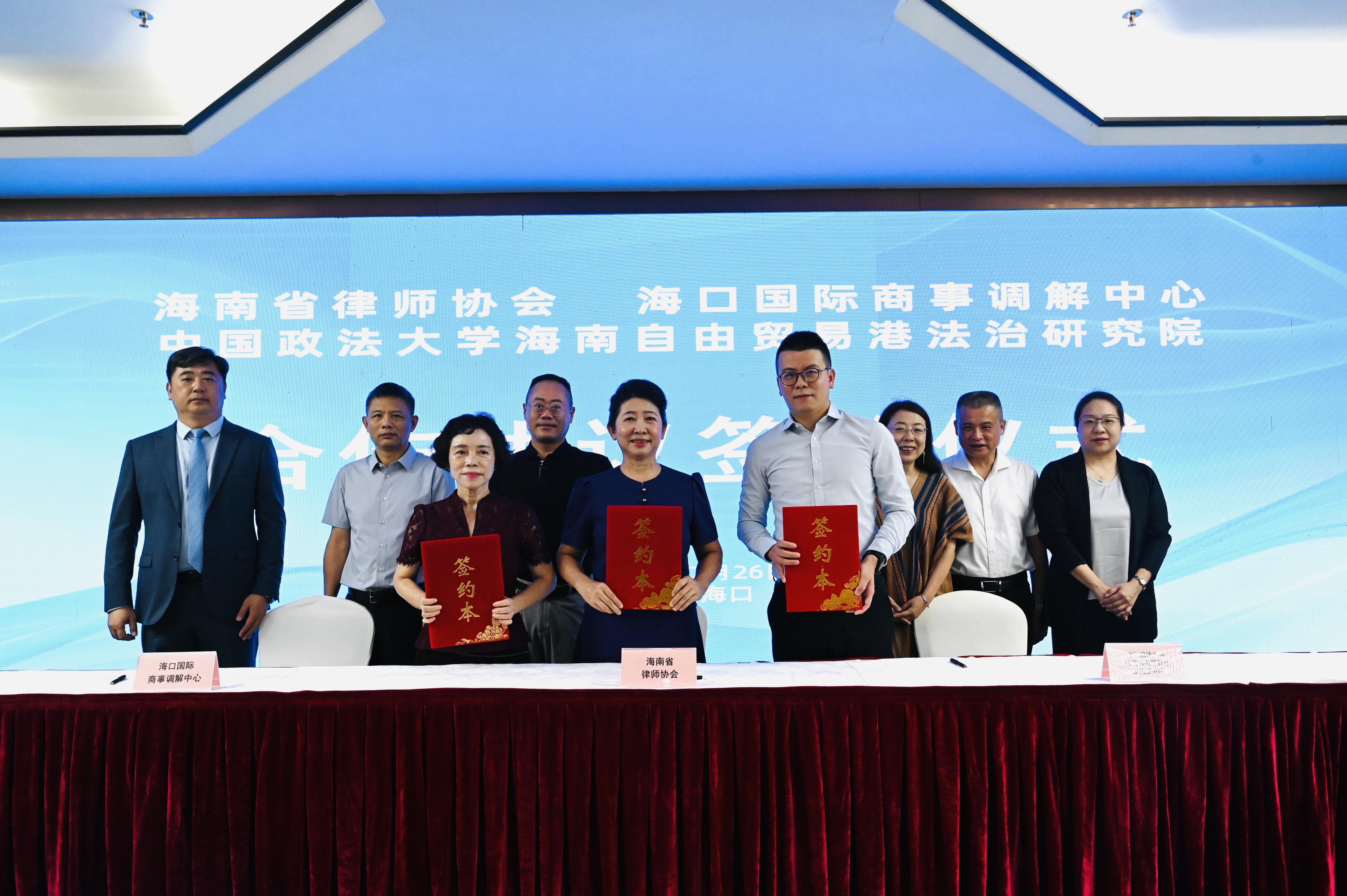 7月26日上午,海南省律師協會、海口國際商事調解中心、中國政法大學海南自由貿易港法治研究院合作協議簽約儀式暨海南自由貿易港法治政府建設主題講座在??谂e行。