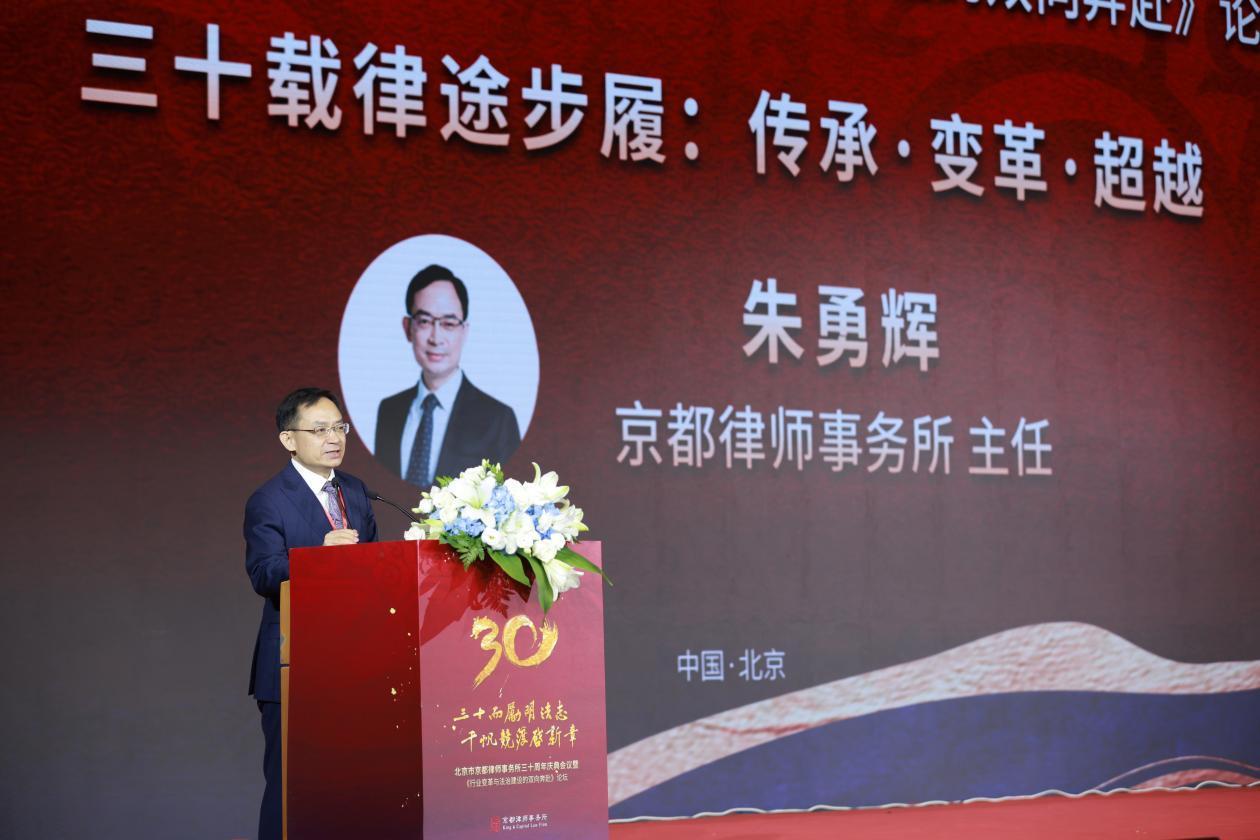 京都律師事務(wù)所主任朱勇輝在致辭中表示,在京都所三十歲生日這個(gè)特別的日子里,與會(huì)人員共同關(guān)注中國律師的成長,共同關(guān)心中國律師行業(yè)的發(fā)展,共同關(guān)切中國法治的進(jìn)步。希望在探討中國律所四十載旅途步履,聚焦中國律師行業(yè)變革的同時(shí),能夠總結(jié)中國律所發(fā)展的經(jīng)驗(yàn)與路徑,讓律師為國家法治建設(shè)作出更大貢獻(xiàn)。