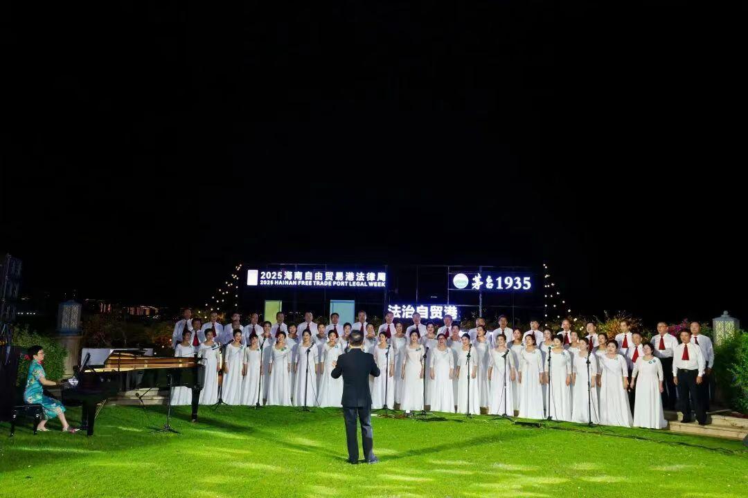 活動在海南律師合唱團(tuán)帶來的混聲合唱《萬泉河水清又清》中拉開序幕,經(jīng)典旋律與濱海夜色交相輝映,令人心潮澎湃。接著,《傳奇》《領(lǐng)航》等歌曲依次上演,展現(xiàn)出海南律師隊(duì)伍精湛的合唱功底和昂揚(yáng)向上的精神風(fēng)貌;女聲合唱《世界贈予我的》《漁家姑娘在海邊》《花開中國》以柔美和聲描繪出海南的地域風(fēng)情與時(shí)代氣息。