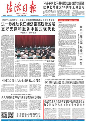 會議強(qiáng)調(diào),要堅(jiān)持不懈用黨的創(chuàng)新理論凝心鑄魂,在融會貫通、學(xué)悟篤行習(xí)近平法治思想和習(xí)近平文化思想上采取更多硬實(shí)舉措。要加強(qiáng)宣傳思想文化領(lǐng)域行政立法,加快完善相關(guān)法律法規(guī)體系。要堅(jiān)定文化自信,深入推進(jìn)社會主義法治文化建設(shè),加強(qiáng)中華優(yōu)秀傳統(tǒng)法律文化保護(hù)、宣傳和傳承,弘揚(yáng)社會主義核心價(jià)值觀和法治精神。要扎實(shí)做好法治新聞宣傳,講好法治故事,鞏固壯大主流思想輿論,守好意識形態(tài)陣地。要以釘釘子精神落實(shí)全國宣傳思想文化工作會議部署,立足職能為在新的歷史起點(diǎn)上繼續(xù)推動文化繁榮、建設(shè)文化強(qiáng)國、建設(shè)中華民族現(xiàn)代文明提供有力法治保障。