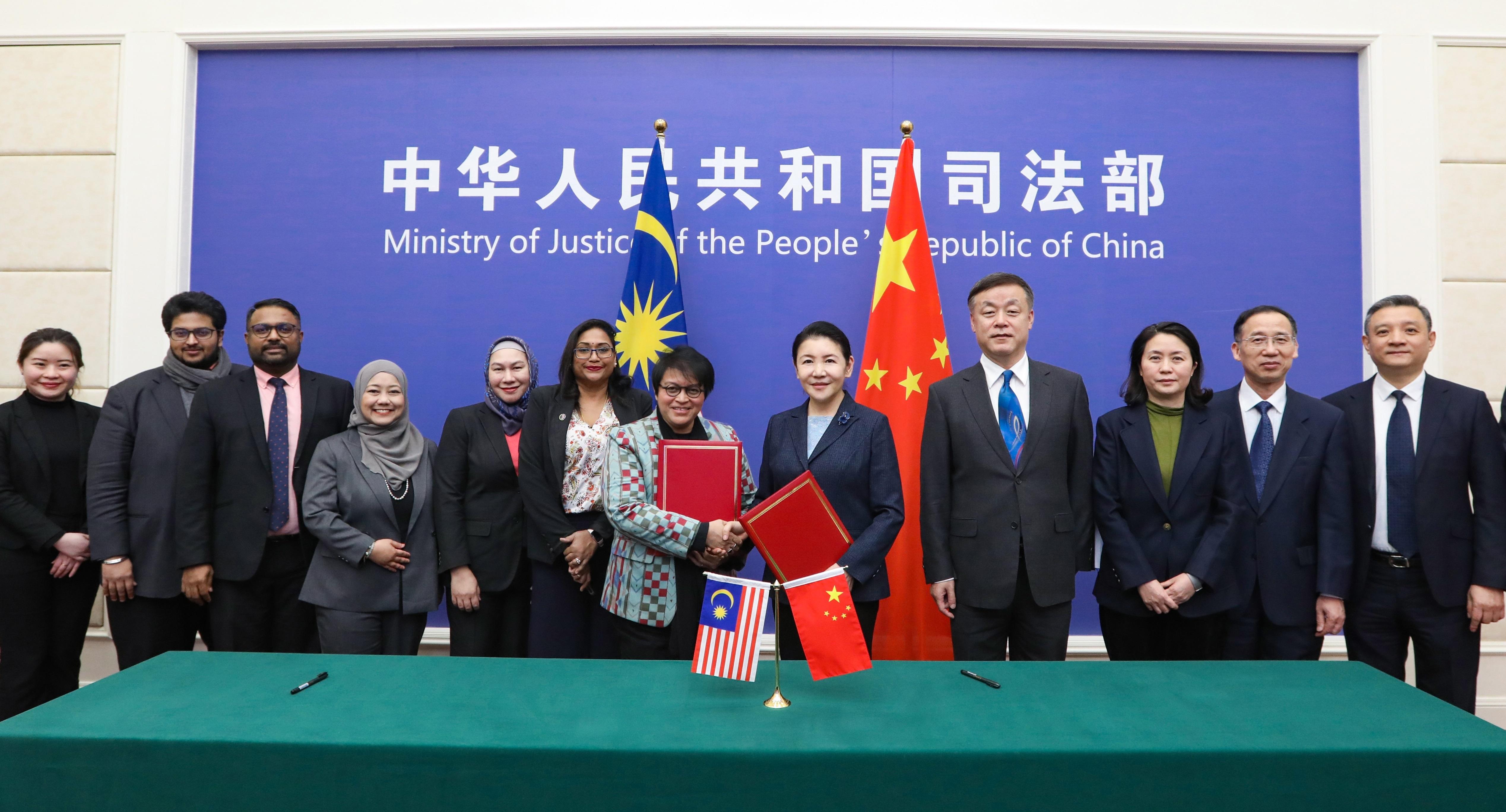 司法部部長賀榮和馬來西亞總理府法律及體制改革部長阿莎麗娜簽署《中華人民共和國司法部和馬來西亞總理府法律事務(wù)辦公室合作意向書》。