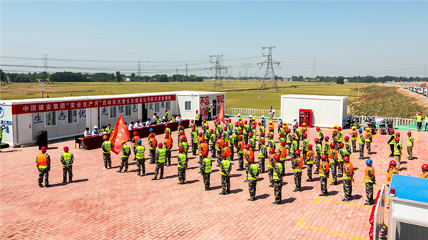 6月3日,雄安集團(tuán)在南拒馬河防洪治理工程指揮現(xiàn)場舉辦“安全生產(chǎn)月”啟動儀式暨生態(tài)建設(shè)公司防汛應(yīng)急演練活動。中國雄安官網(wǎng)記者馬夢迪 攝