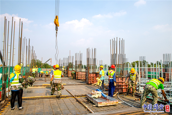 白洋淀引黃大樹劉泵站工程施工現(xiàn)場,新區(qū)建設者冒著酷暑炎熱,辛苦付出,確保按時完成工作任務。中國雄安官網(wǎng)記者馬夢迪 攝